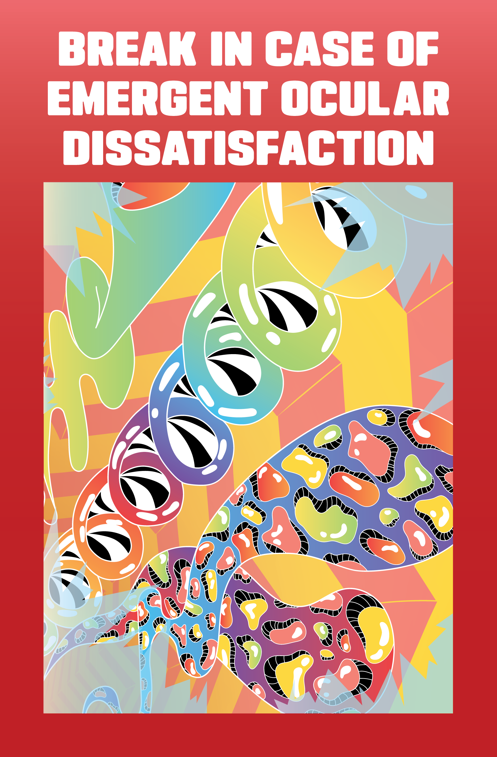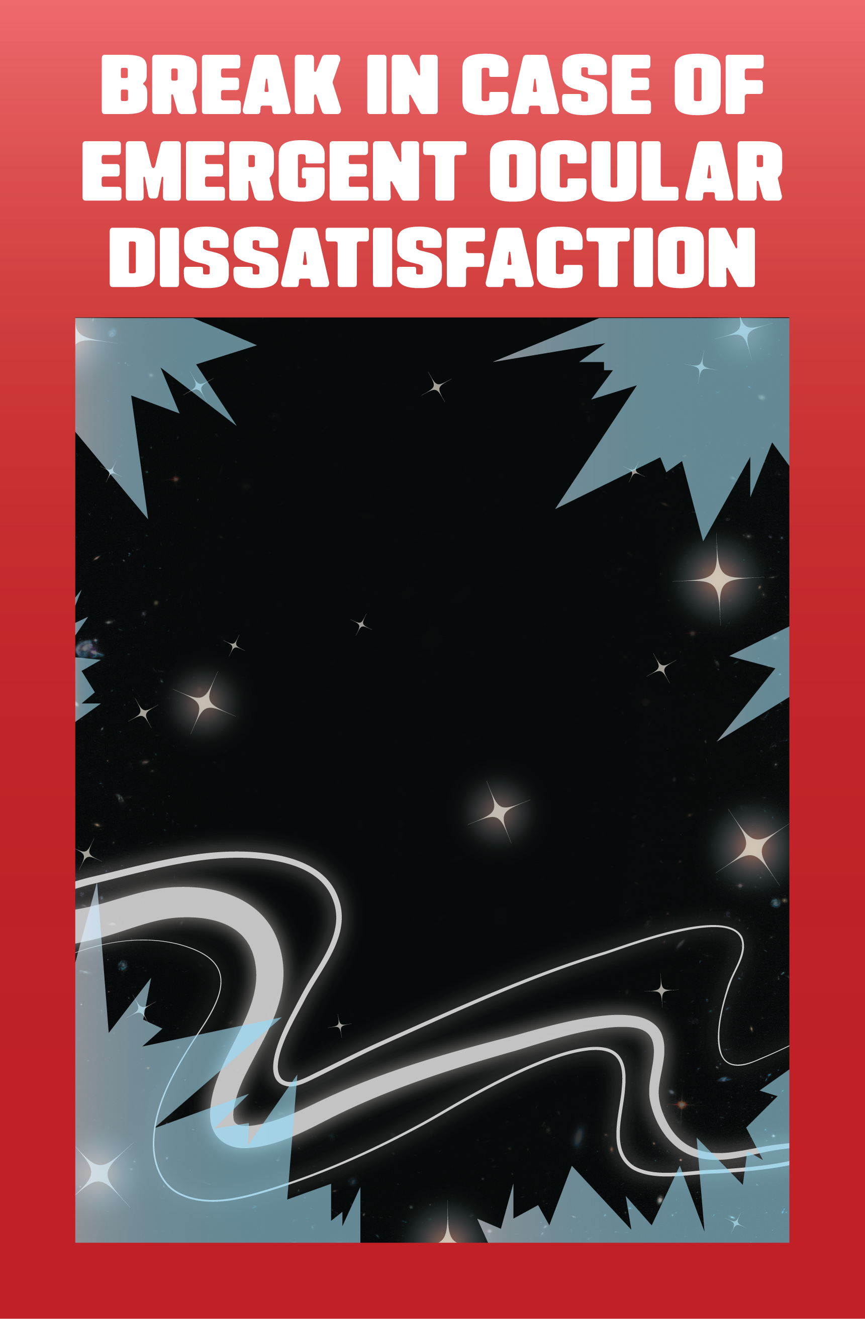 Small 8 page zine drawing inspiration from "BREAK IN CASE OF EMERGENCY" glass cases. Features original design elements, illustrations, and poetry for the purpose of providing a simple, yet interesting, form of media to look at when bored, or for decoration on the wall.